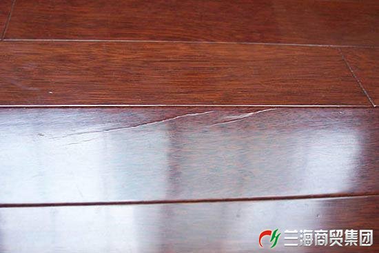 5、木地板鋪裝時(shí)相鄰板塊之間未按要求預(yù)留伸縫,受潮濕空氣后吸濕膨脹起拱,甚至漆面擠裂;